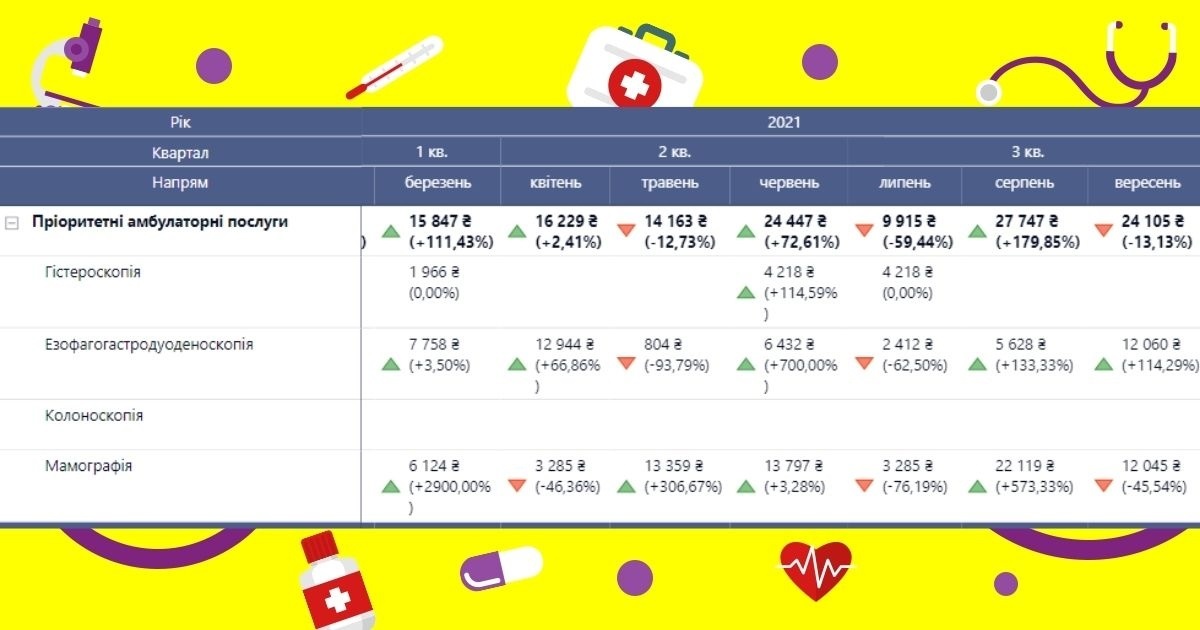Після того, як заклад очолила нова керівниця Тетяна Георгієва, за цим пакетом також відбулося збільшення прибутків за рахунок відповідального внесення звернень пацієнтів до системи.