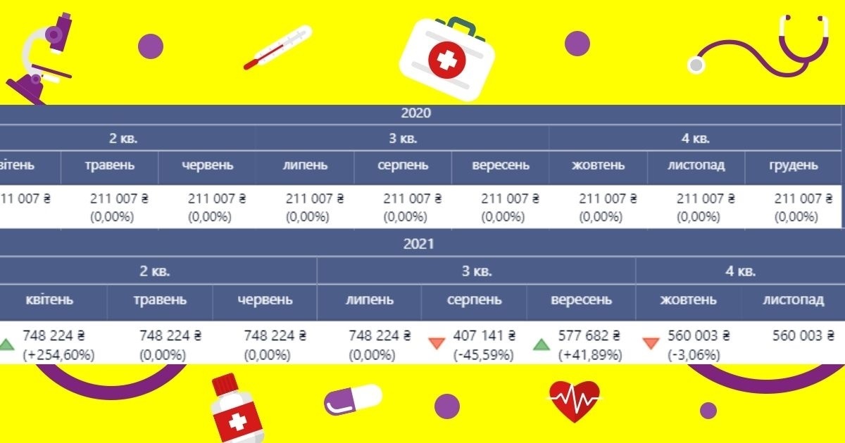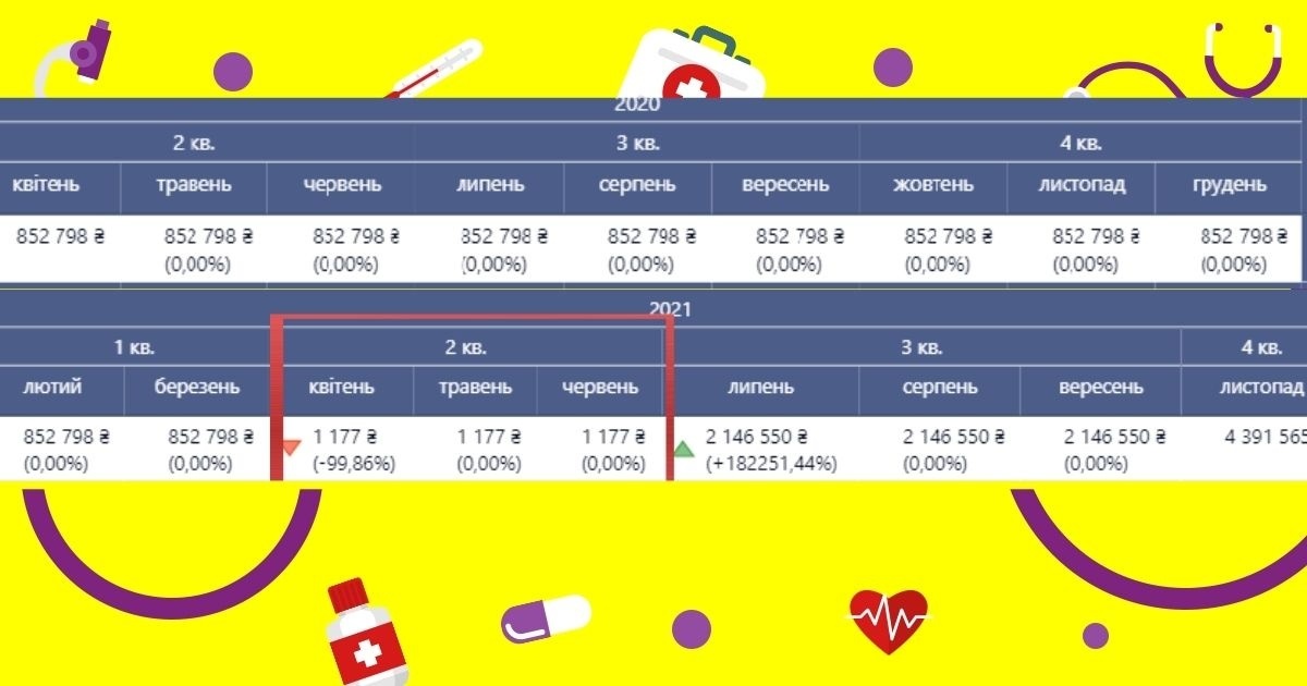 Однак з квітня 2021 року, коли заклад перейшов на нову форму співпраці з НСЗУ, це відділення почало раптово отримувати всього 37 932 гривні, що складало 2,9 % від потреби поліклінічного відділення.