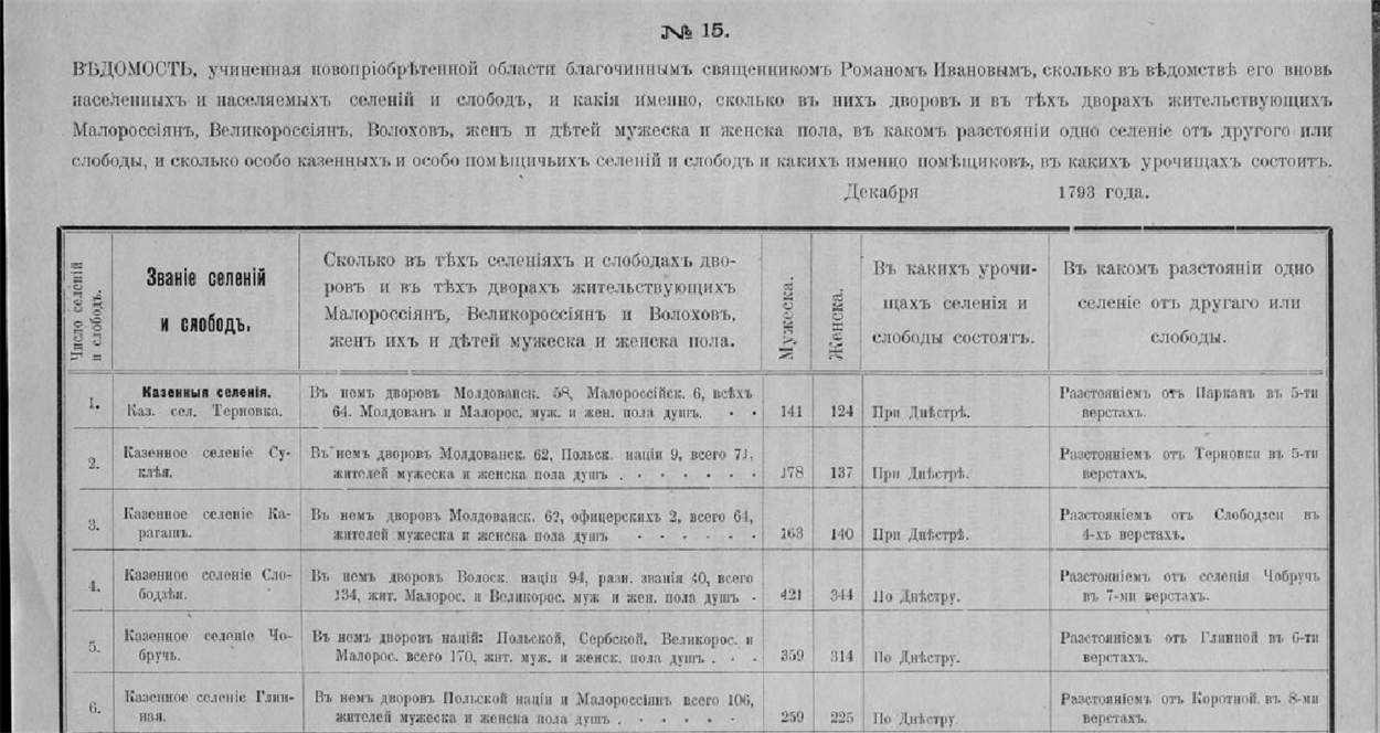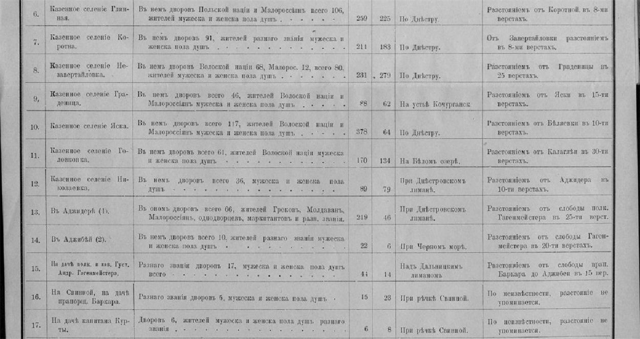 Є ще один цікавий документ, копія з відомості грудня 1793 року, складений священником за кількістю подвір’їв у «новопріобретенной области» регіону. Серед низки населених пунктів в ній зазначені Градениці, Яськи і Головківка на Білому озері.