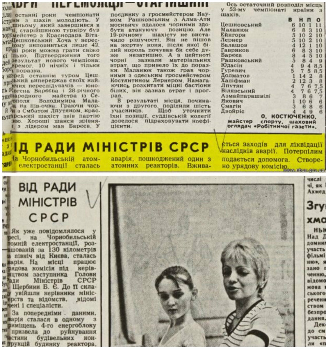 Інформація про аварію на Чорнобильській атомній станції в ніч проти 26 квітня 1986 року взагалі не висвітлювалася радянськими чи українськими ЗМІ впродовж перших двох днів.