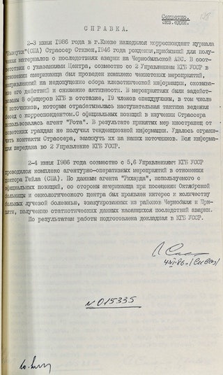 Так, серед архівів знаходиться довідка щодо кореспондента журналу "NewsWeek" Страссера Стівена. У довідці пишеться, що провели низку операцій, щоб не допустити збір "неправдивої" інформації, сковування його діяльності та зниження активності.
