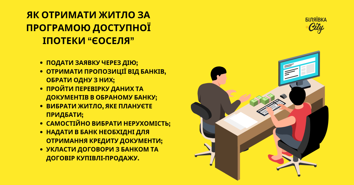 Щоб отримати житло за програмою державної іпотеки “єОселя” необхідно:
