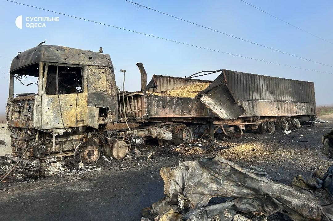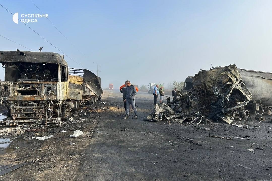 В Ізмаїльському районі Одеської області вночі 2 листопада російські ударні безпілотники атакували цивільну інфраструктуру, спричинивши пожежу на автостоянці з вантажівками. За попередніми даними, загинули двоє людей, троє постраждали. Пошкоджено п’ять вантажних автомобілів, серед них зерновоз із соєю.