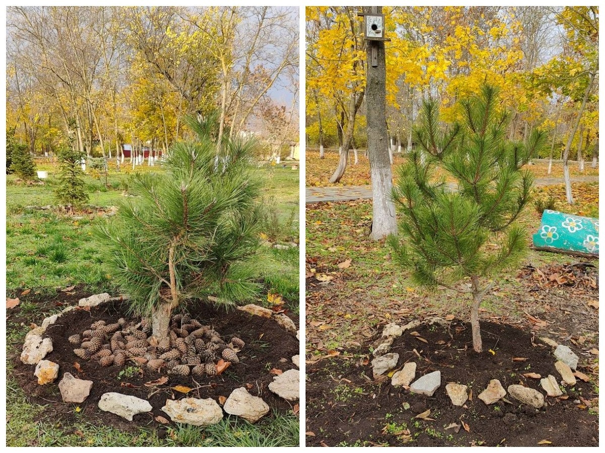 Зокрема, купили сосни, туї та ялівці, які днями висадили у парку. Допомогли з посадкою місцеві чоловіки.