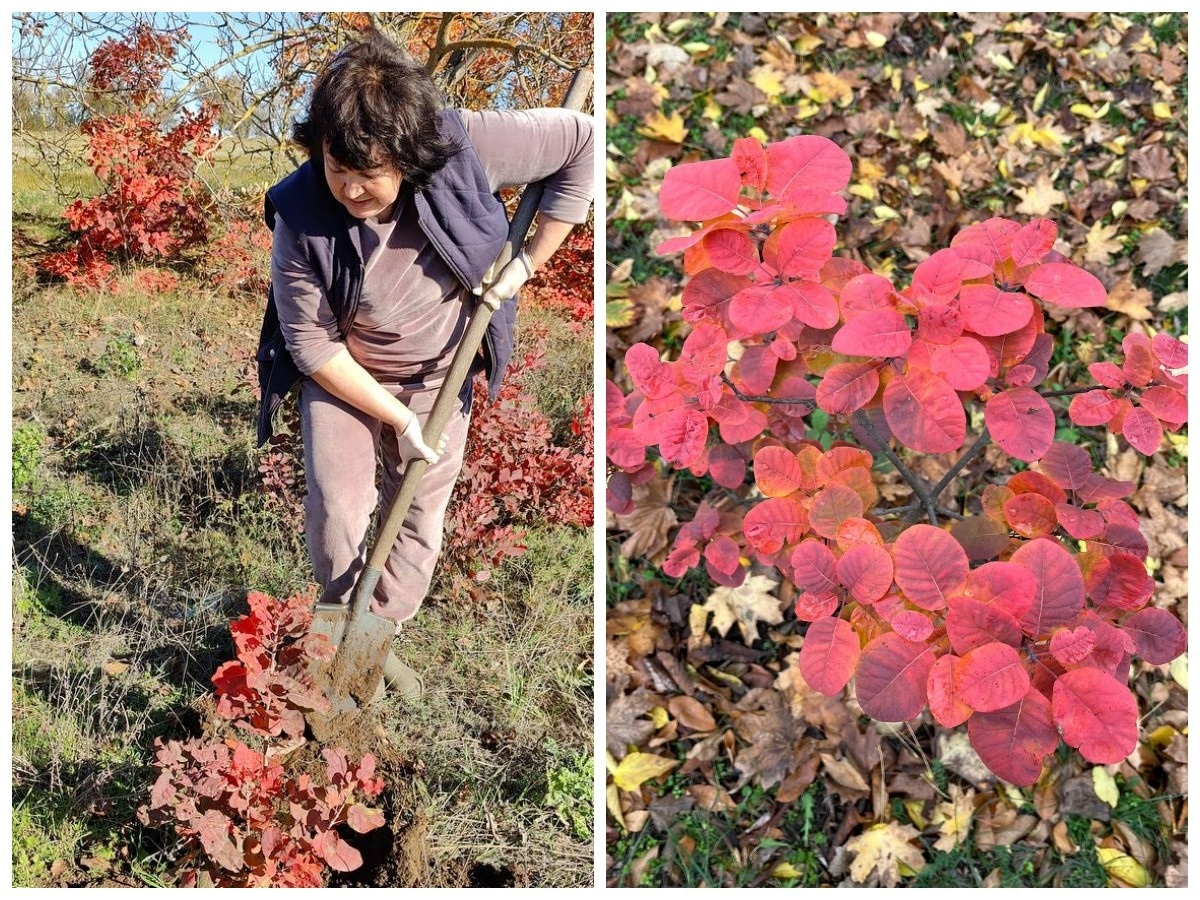 Разом із Катериною над красою парку працює ще одна активна жителька села — Ірина Драгонер. Вона раніше висадила тут саджанці акації з фіолетовим цвітом, а також скумпії, що восени вкриваються яскравим червоним листям.