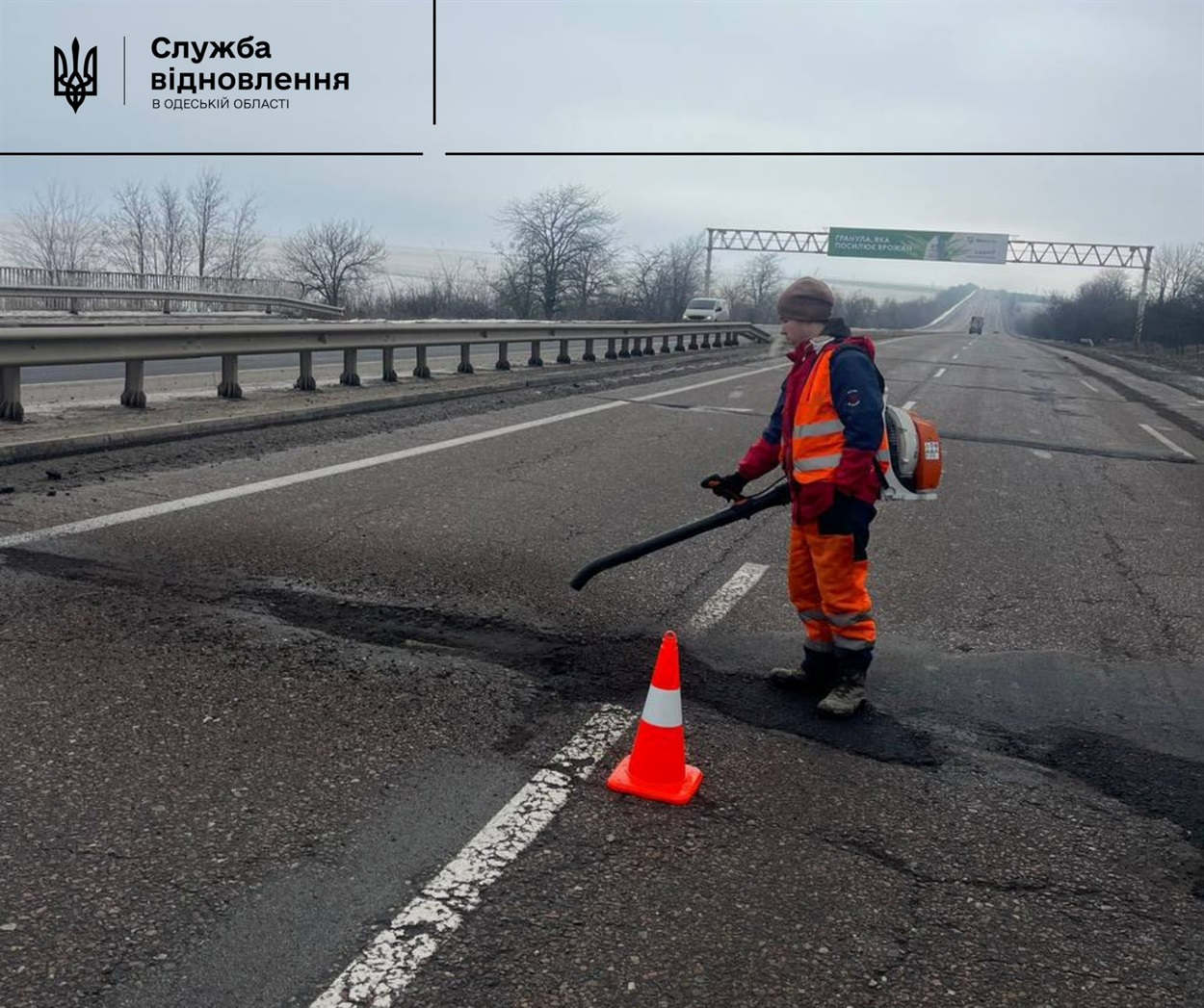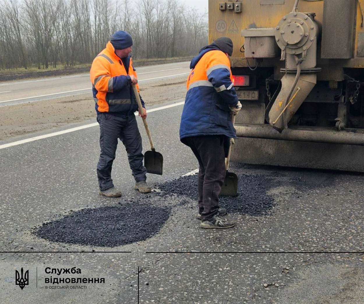 Після тривалих морозів і опадів на автошляхах Одеської області утворилися вибоїни. Для забезпечення безпеки руху бригади дорожніх служб розпочали аварійний ямковий ремонт.