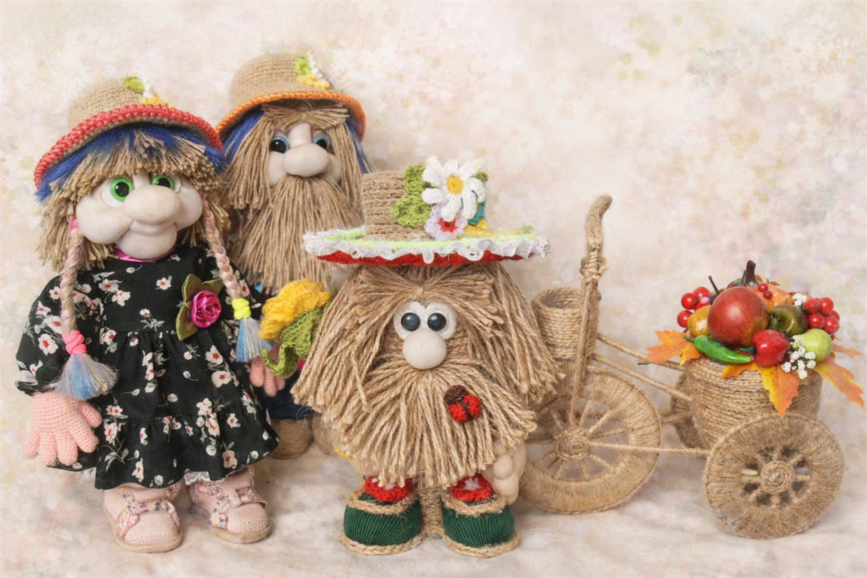 Окрім в’язання, Любов працює і з іншими матеріалами. Зі шпагату вона виготовляє декоративні сувеніри, а з тканини шиє новорічних гномів. Каже, що нові ідеї для творчості часто з’являються саме завдяки онучці.