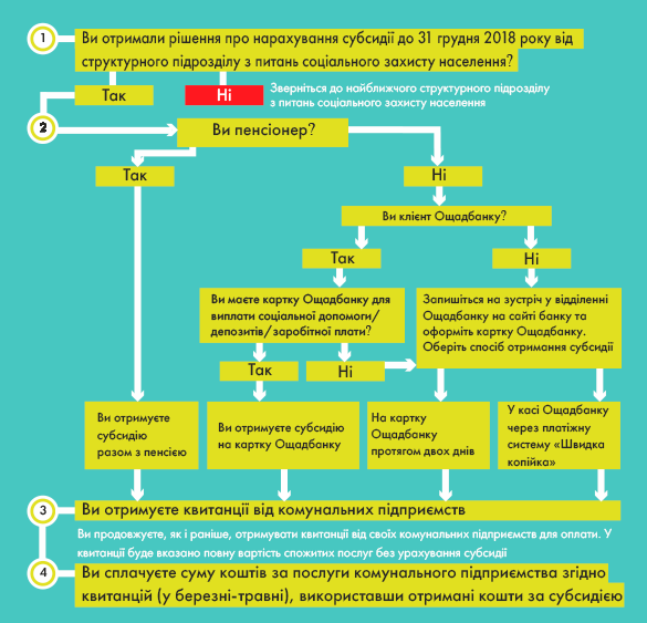 Покрокова схема перерахування субсидії субсидіантам, яким призначено субсидію до 31 грудня 2018 року
