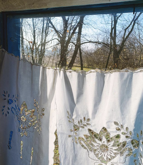 Фіранки на вікнах, фото з села Ліпляве Черкаської області, проєкт "Бабусина хатка".Автор: https://www.instagram.com/babysuna_hatka/