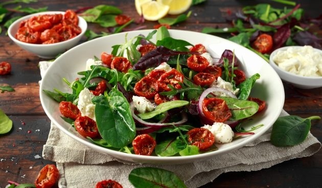 - помідори, оливки, зелень, моцарела, оливкова олія, сіль, прованські трави