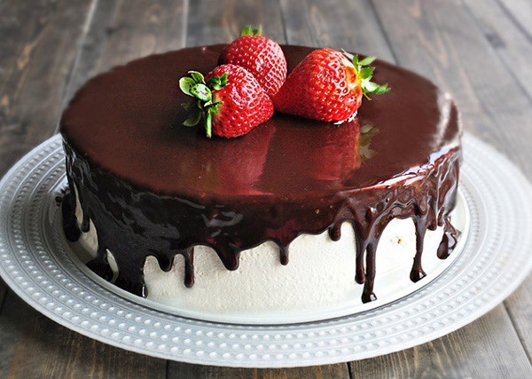 4. Тим часом розтопити шоколад, додати олію та полити отриманою масою торт.