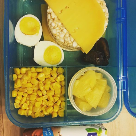 Хлібці з сиром. Відварене яйце. Кукурудза. Консервований ананас.