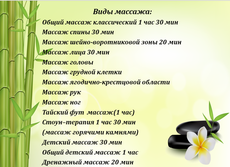 Общий массаж благотворно действует на весь организм, так как прорабатывается все тело — от макушки головы до пальцев на ногах, повышает тонус мышц, суставно-связочного аппарата, активизирует образование синовиальной жидкости, улучшает циркуляцию крови, отток лимфы, что способствует активному снабжению органов питательными веществами.